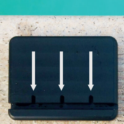 Passo 3: remova a película do lado inferior do AQWAGRIP (ver a imagem 2) e cole-o a 5 cm da borda da piscina.